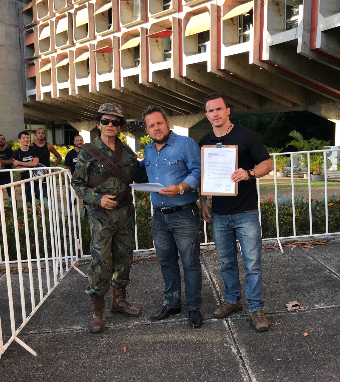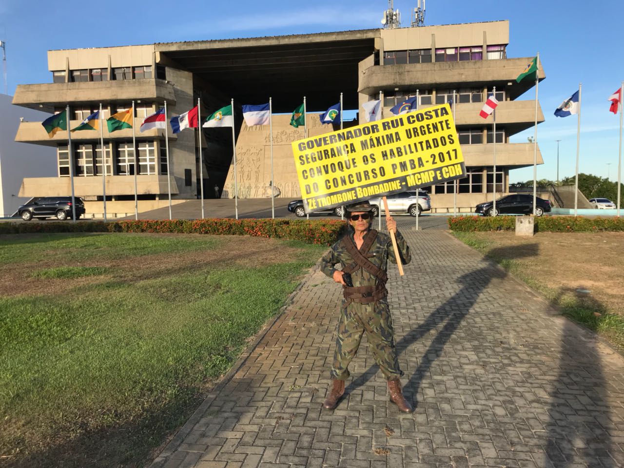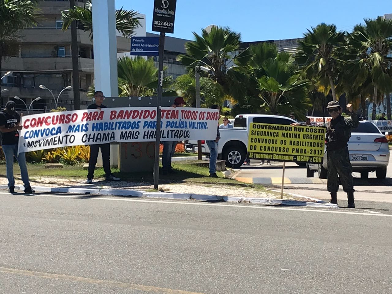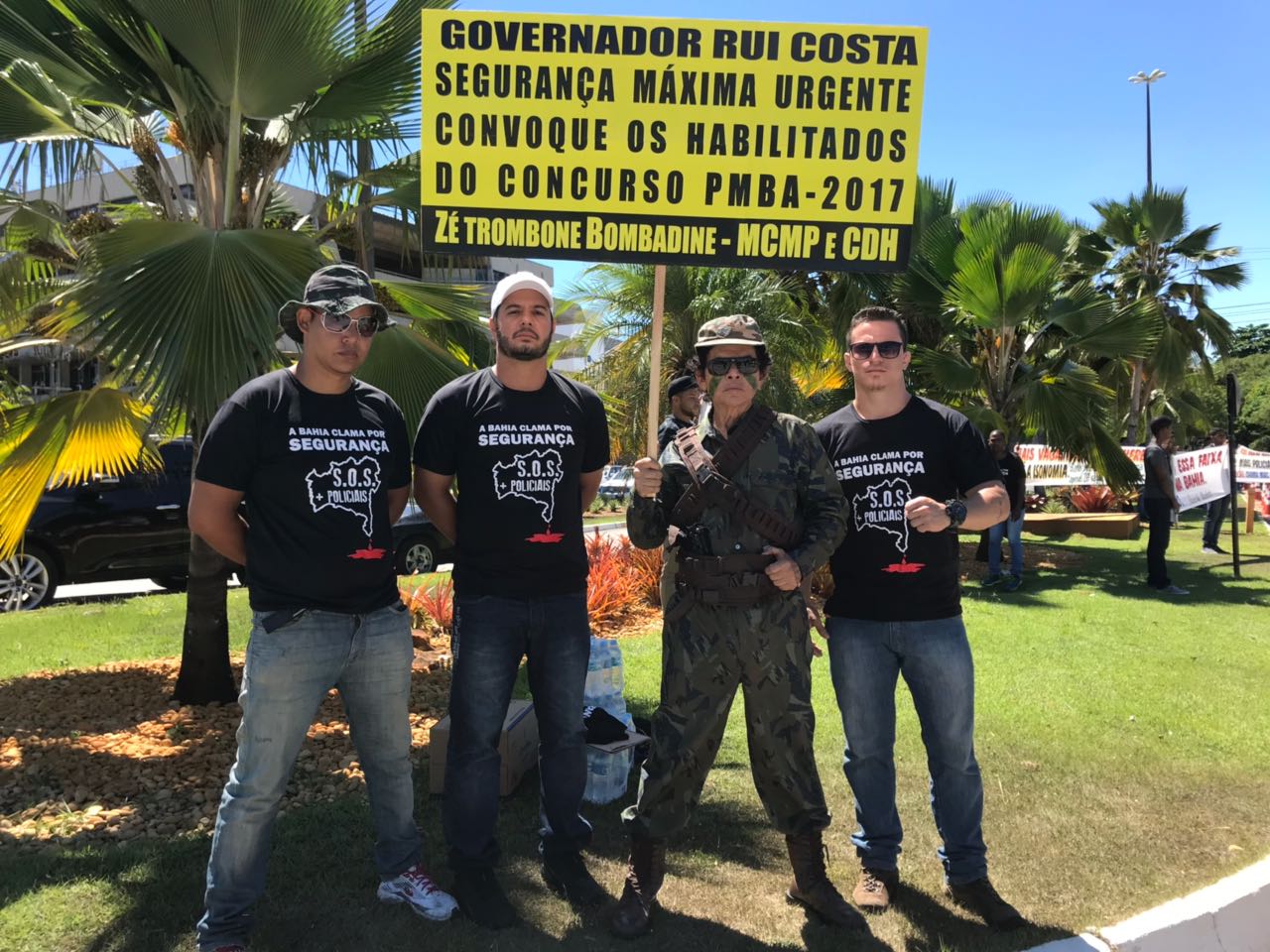 Nesta Terça, a partir das 13:00 hs, na Assembleia Legislativa da Bahia, ocorreu uma Manifestação de Habilitados no Concurso da PMBA – 2017, participando Zé Trombone Bombardine, personificado em André Cairo, Presidente do Movimento Contra a Morte Prematura, com uma Placa “Governador Rui Costa, Segurança Máxima Urgente, Convoque Habilitados do Concurso da PMBA-2017”; e da Comissão dos aprovados no referido Concurso, Nilson de Araújo, líder da referida Comissão, que entregaram em mãos do Sr. Marcos Palmeira, Assessor de Rui Costa, um Ofício CDH-VC-01/2018 devidamente protocolado, permanecendo até o final.
