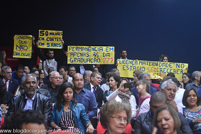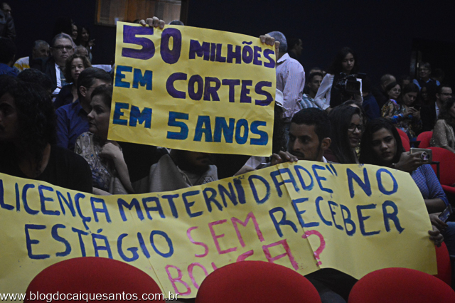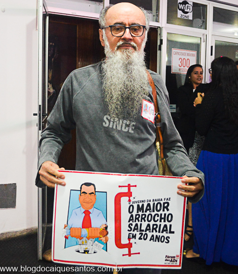 Um momento “saia justa” foi a manifestação de professores e estudantes contra o arrocho salarial, o corte de verbas para a instituição e acima de tudo, a falta de diálogo com o governador Rui Costa, que segundo a ADUSB, se recusa a recebê-los para conversar. Cartazes ostentados por docentes e discentes traziam palavras de ordem.