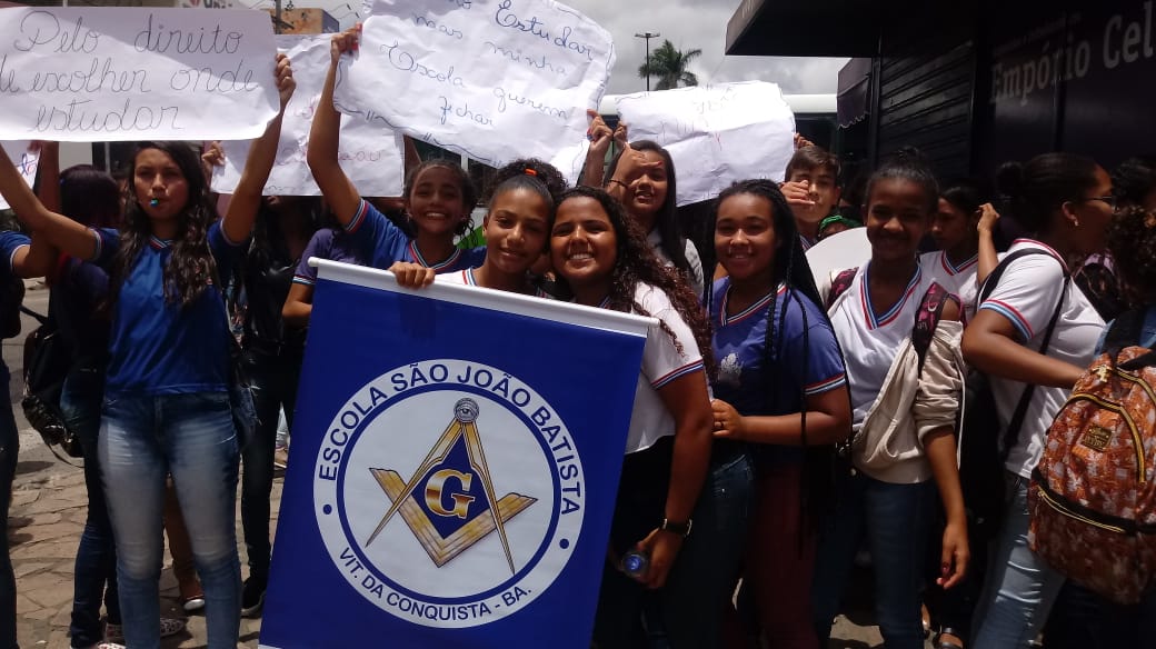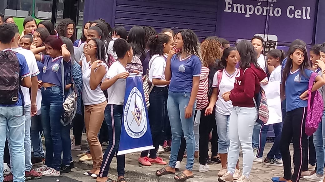 Alunos da Escola São João Batista, que integra a rede estadual, realizaram uma manifestação no terminal Lauro de Freitas em Vitória da Conquista (BA), na manhã desta sexta-feira (30).