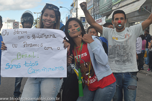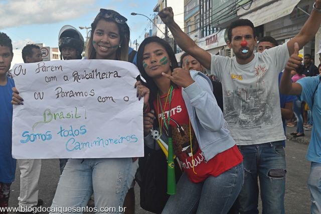 Os protestos dos caminhoneiros ganhou a adesão de estudantes, comerciários e população em geral. Na tarde desta sexta-feira (25) o Blog do Caique Santos foi o único veiculo de comunicação a registrar o início dos protestos. “Estamos aqui por nossa conta, não temos nada a ver com UNE, UBES ou qualquer outro movimento estudantil, somos alunos de diversos colégios”, disse uma estudante que preferiu não ser identificada.