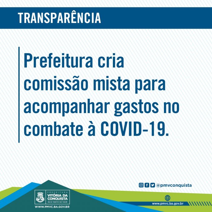 O diretor administrativo da Secretaria Municipal de Saúde, Diego Gomes, destaca que o principal objetivo da criação da comissão mista “é de dar total transparência e escancarar as ações do município no combate à Covid-19. Tudo isso pode ser acompanhado de perto, como também pelo site da Prefeitura, que tem uma aba específica para o acompanhamento das ações. Tudo está sendo feito dentro da legalidade, conforme a legislação direciona para que façamos e, não seria por menos, da cidade que a gente é. A mais transparente da Bahia, referência no Brasil, com nota 9.8”, finaliza o diretor.