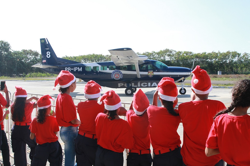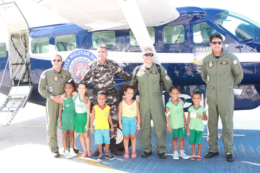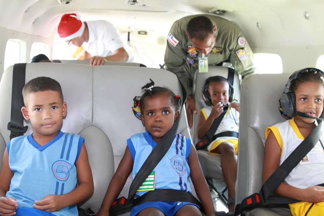 Aproximadamente 50 crianças foram sorteadas para passear na aeronave guardião 08, Caravan, um avião do grupamento. O pequeno Leonardo Pierre Alencar, de apenas 6 anos, estudante da creche Escola Santo Antônio de Pádua, de Periperi, ficou feliz com a experiência em ter sobrevoado, pela primeira vez.