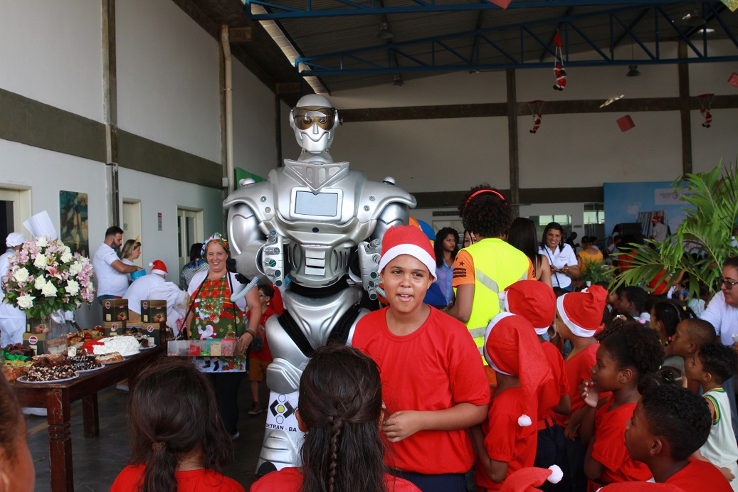 Além de comidas típicas do final do ano, um lanche com bolos variados, salgados e hambúrgueres foi servido para os pequenos. Rebeca Lima Alexandre, 7, do Educandário e Creche Renovação, situado no Dom Avelar, se lambuzou toda de brigadeiro de colher. A garota não escondeu o que causava tanta ansiedade. “Amo chocotone”, revelou, antes de pegar o primeiro pedaço.