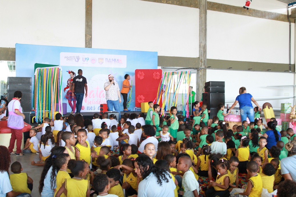 O bom velhinho desceu de helicóptero para entregar os presentes. O governador Rui Costa e a primeira-dama do Estado e presidente das Voluntárias Sociais, Aline Peixoto, também marcaram presença na folia.
