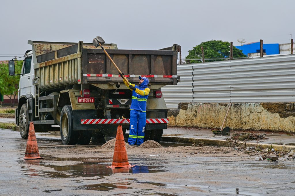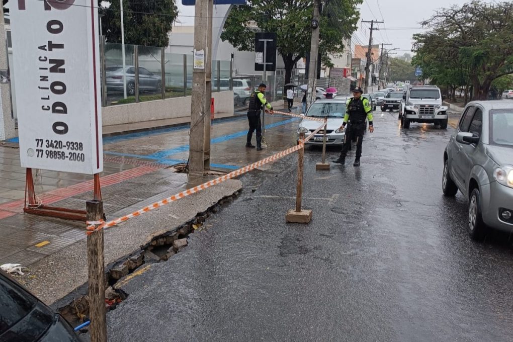 O Simtrans realiza patrulhamento e sinaliza os locais com erosão asfáltica, como nas avenidas Ascendino Melo e Brumado, e Praça Sá Barreto.