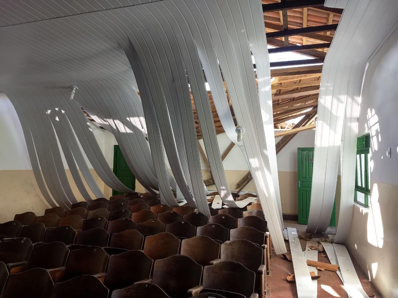 As cenas parecem de uma “guerra”. Após recente inauguração que ocorreu no dia 16 de junho, o telhado do Auditório do Tiro de Guerra 06-006 desabou na noite desta quinta-feira (28). Até o momento não há relato de feridos. A obra foi executada pela Prefeitura de Vitória da Conquista, que ainda reformou o piso, instalação elétrica, cozinha, banheiros e tubulação, entre outras coisas.