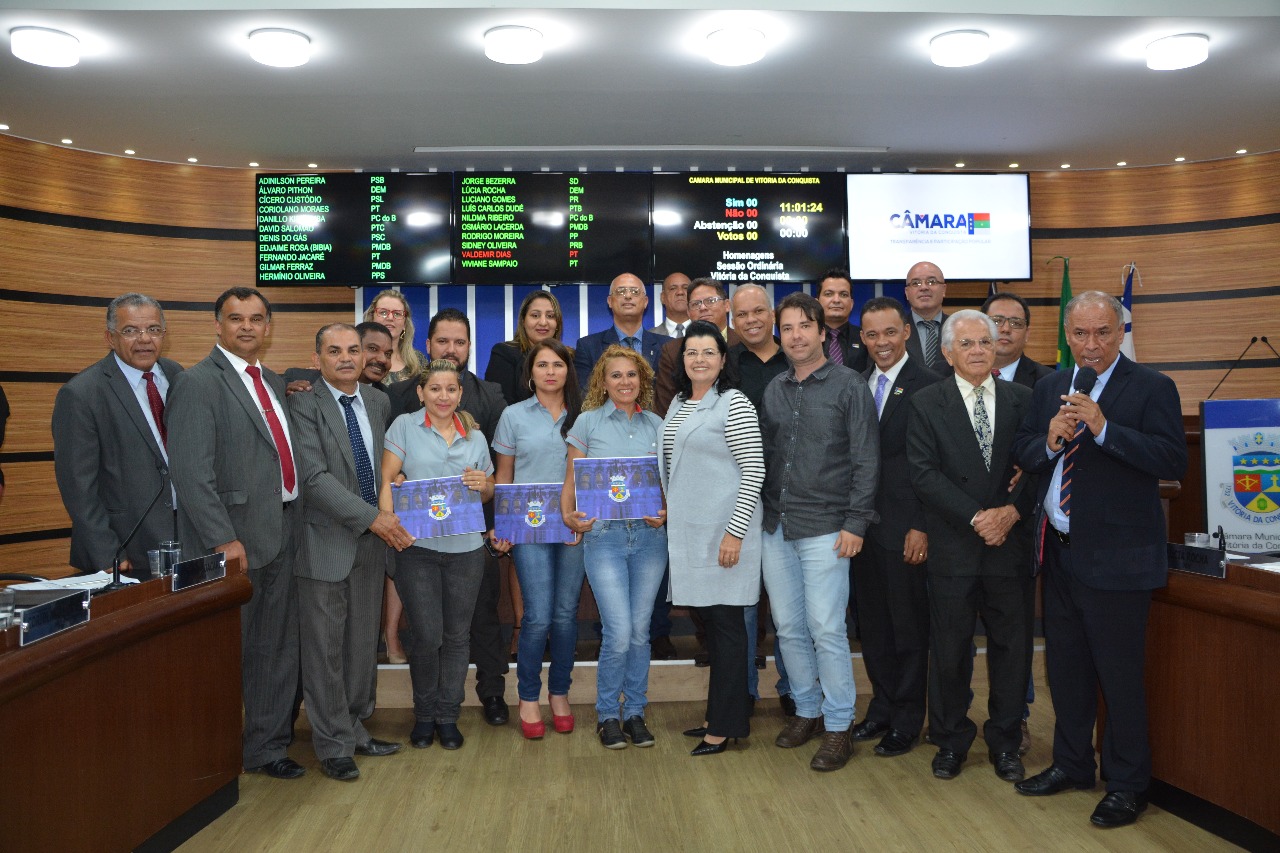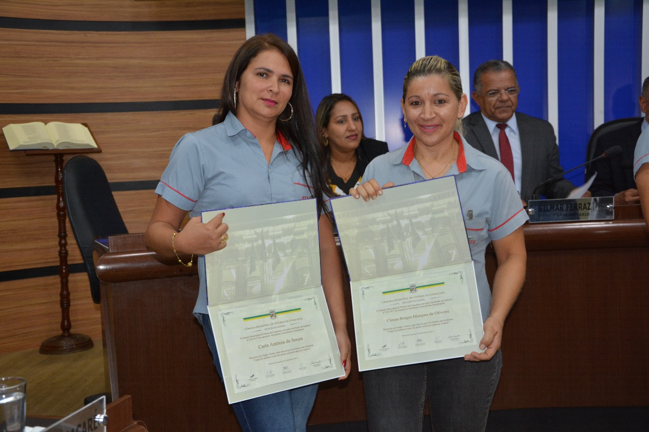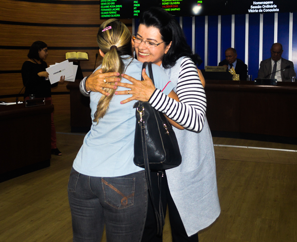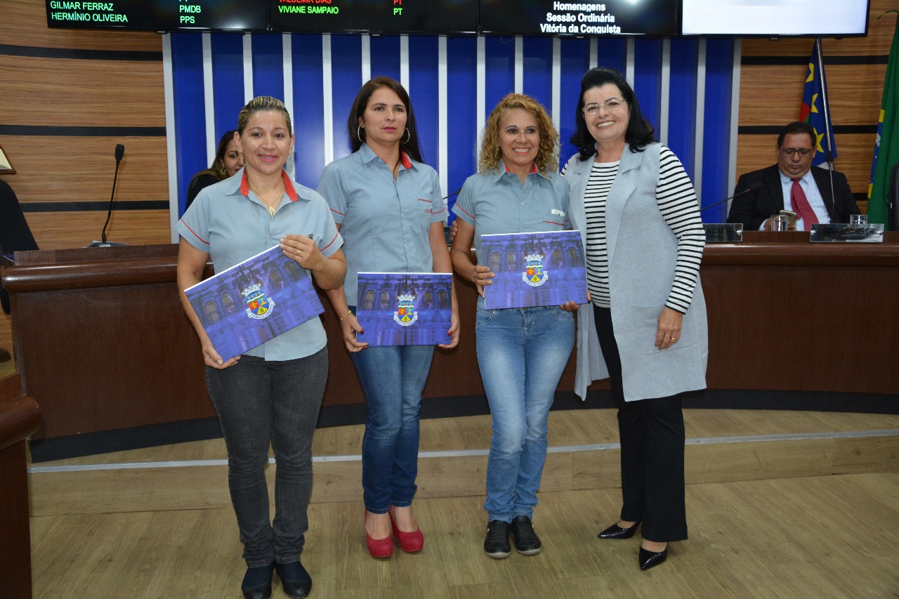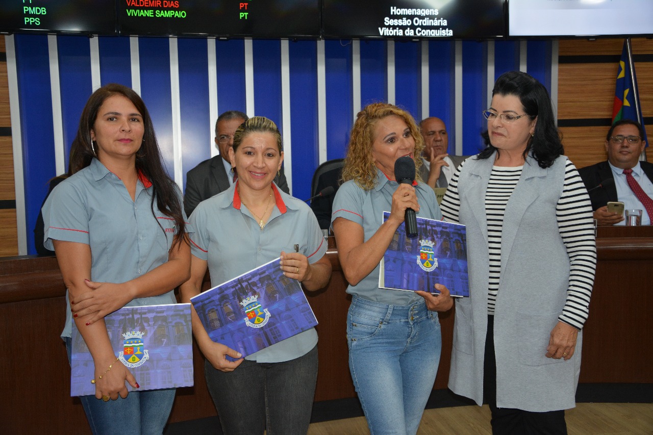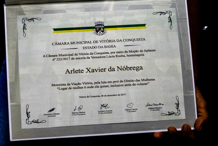 “Eu hoje sou a mulher mais feliz de Vitória da Conquista”, foi assim que a extrovertida Arlete encerrou sua fala na Câmara de Vereadores de Vitória da Conquista, arrancando aplausos e gritos dos presentes no momento solene. Cleusa Borges, Arlete Xavier e Carla de Sousa, três mulheres acostumadas à agilidade e rapidez do trânsito, desaceleraram para aguardar o solene ato que corou seus contínuos esforços. Por iniciativa da vereadora Lúcia Rocha (DEM), as motoristas receberam a Moção de Aplauso Nº 0222/2017, na última quarta-feira (13), durante uma sessão ordinária da Câmara Municipal. Um reconhecimento à coragem e garra dessas valorosas mulheres.