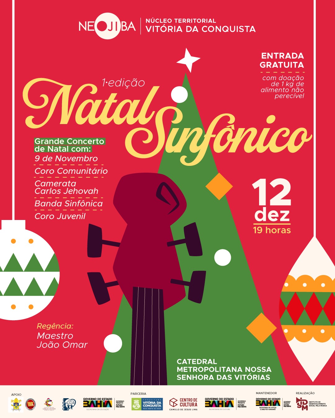 O NEOJIBA (Núcleos Estaduais de Orquestras Juvenis e Infantis da Bahia) realiza, no próximo dia 12 de dezembro, às 19h, um Grande Concerto de Natal na Catedral Metropolitana Nossa Senhora das Vitórias. A apresentação integra a 1ª edição do Natal Sinfônico, projeto que marca o encerramento das atividades do Núcleo Territorial de Vitória da Conquista em 2025. A entrada é livre, mediante a doação solidária de 1 kg de alimento não perecível, destinado a famílias em situação de vulnerabilidade acompanhadas pela paróquia.
