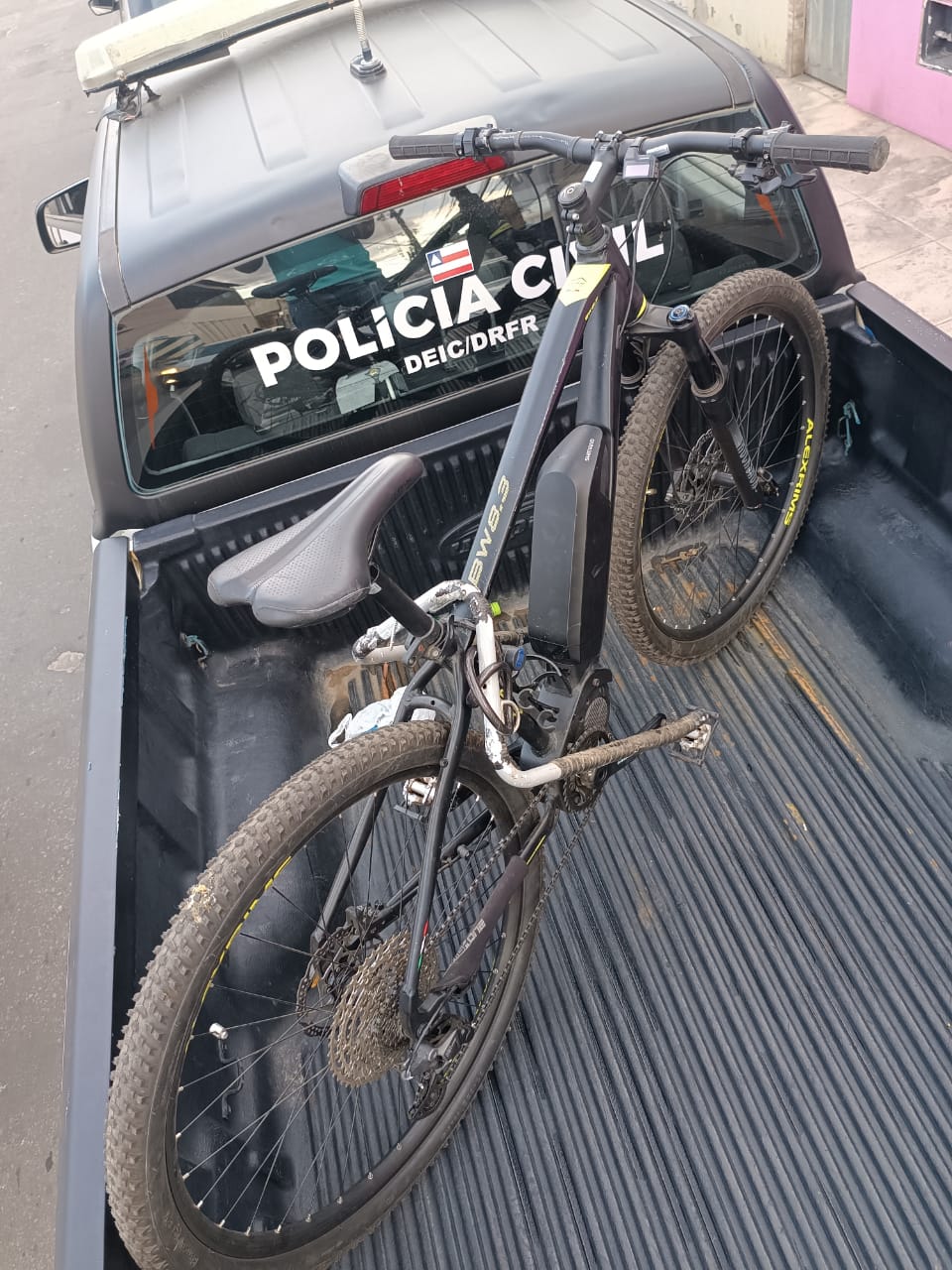 A equipe policial recuperou a bicicleta elétrica OGGI 29 BW 8.3, cor preta, avaliada em R$ 40 mil reais, restituída ao proprietário. As investigações prosseguem para localizar a segunda bicicleta e identificar outros envolvidos.