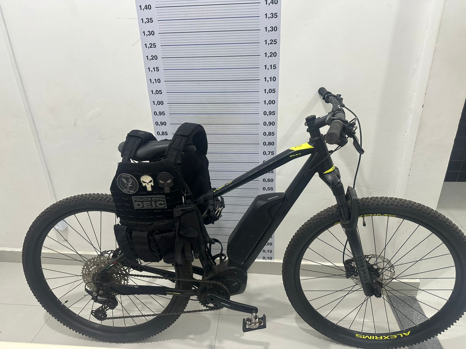 A equipe policial recuperou a bicicleta elétrica OGGI 29 BW 8.3, cor preta, avaliada em R$ 40 mil reais, restituída ao proprietário. As investigações prosseguem para localizar a segunda bicicleta e identificar outros envolvidos.