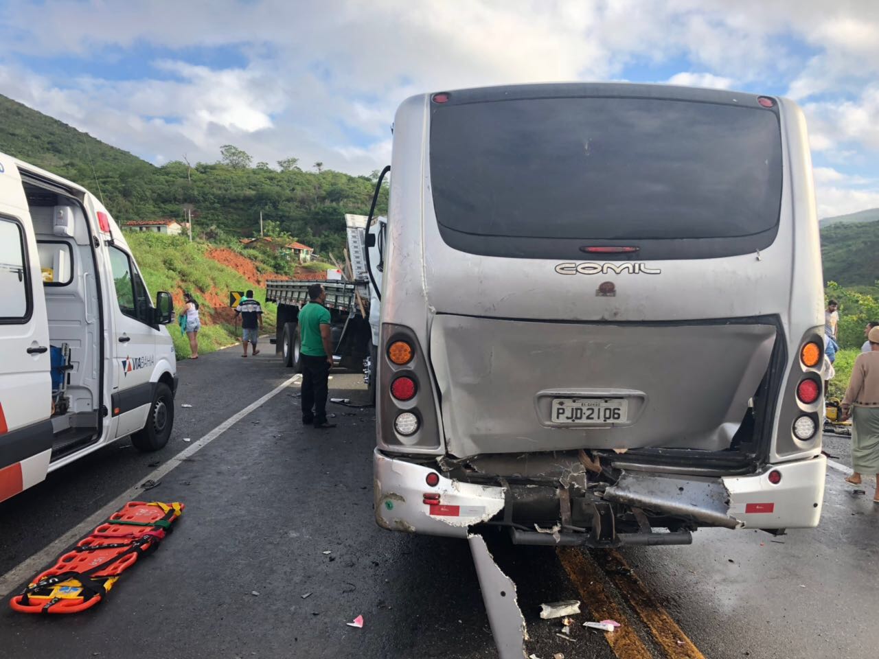 Um acidente entre um micro-ônibus com placa da cidade de Gavião (SP), que retornava de São Paulo e um caminhão bateram de frente, deixando pelo menos uma pessoa morta e cerca de 30 feridos.Com o impacto da batida, a frente do caminhão chegou a entrar no micro-ônibus.