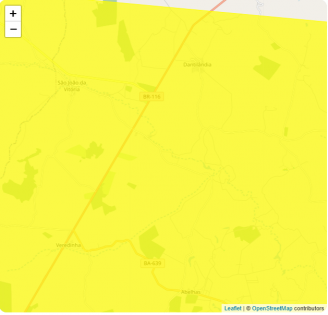 Na zona rural, o alerta de tempestade afeta regiões como os distritos de Cercadinho, Inhobim, Dantelândia, Bate-Pé, Iguá, Veredinha e São João da Vitória, além do povoado de Abelhas, localizado a cerca de 60 km da sede do município. O alerta é de perigo potencial e é válido até às 10h de quarta-feira (19). A previsão é de chuvas entre 20 e 30 mm/h ou até 50 mm/dia, com ventos intensos de 40 a 60 km/h e possibilidade de queda de granizo. O risco de corte de energia elétrica, danos em plantações, queda de galhos de árvores e alagamentos é considerado baixo.